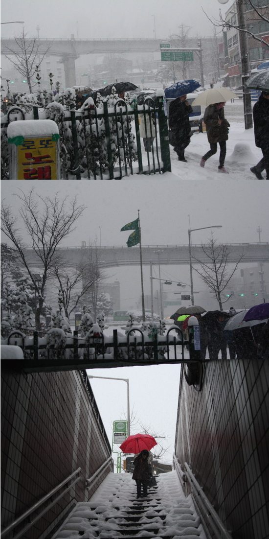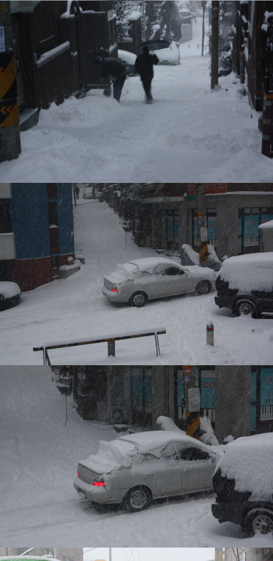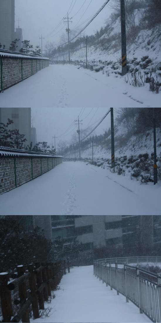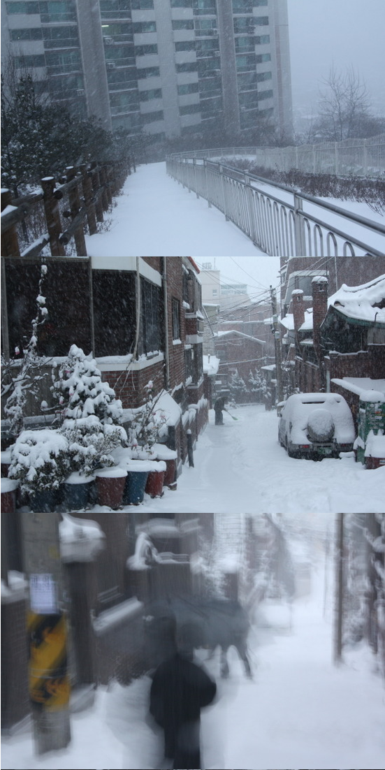 당신이 잠든 사이에 눈을 퍼부었네.