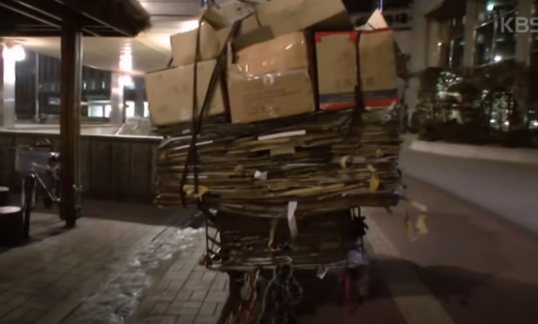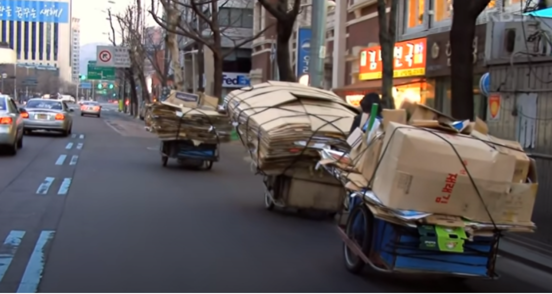 그와 동료들은 이른 아침부터 이렇게 폐지를 나른다.