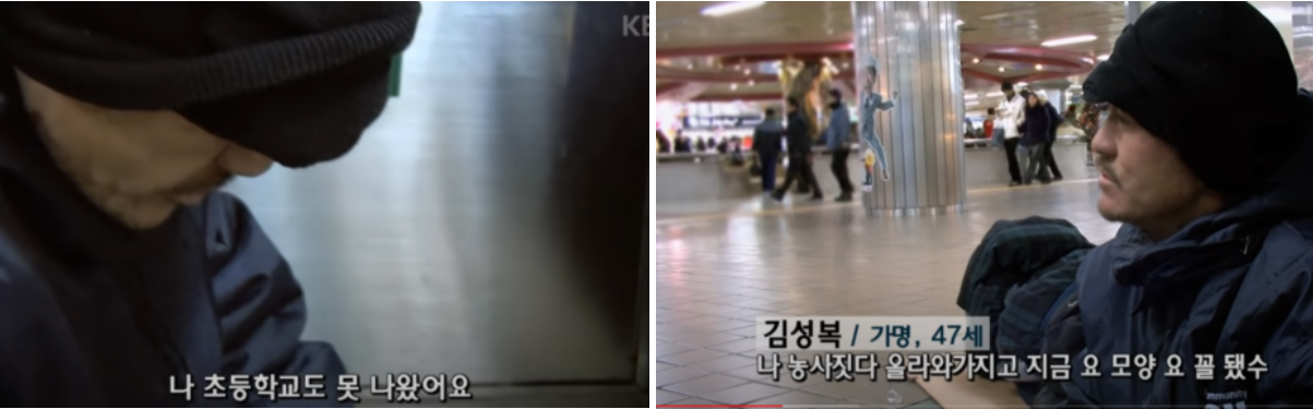 imf당시 건설업을 하다가 정리한 후 가족과도 헤어진 채 노숙생활을 시작한 지 얼마 되지 않는다.