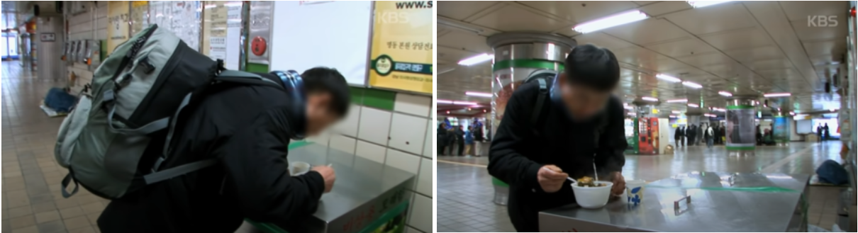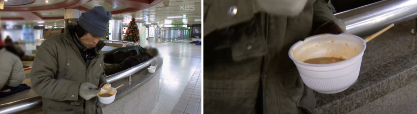 노숙자들중에는 제대로 된 영양섭취가 되지 않은 채 술에 의지하다보니 갑자기 쓰러지는 사람들도 나온다.