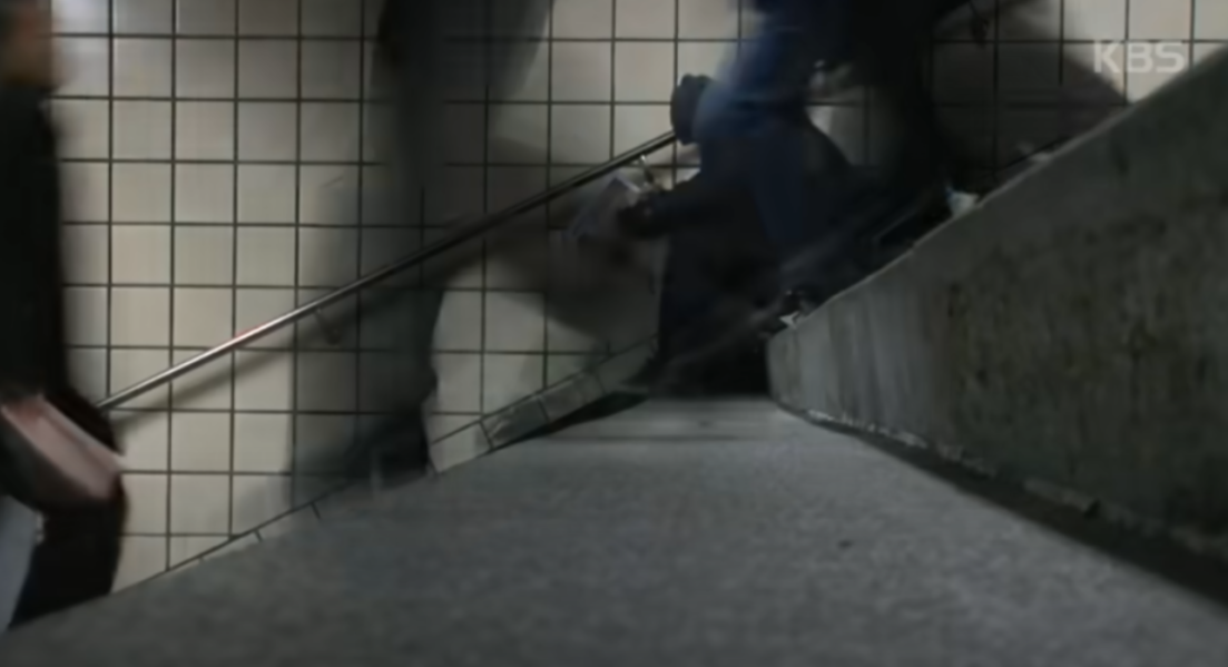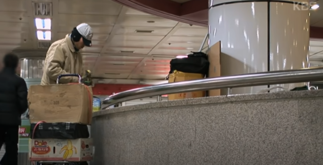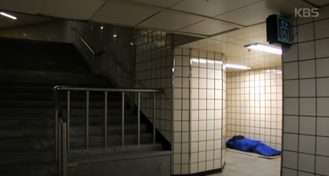 노숙자들도 지하철 첫 차가 다니기 전 자리를 모두 정리한다는 것이 불문율이라고 한다.