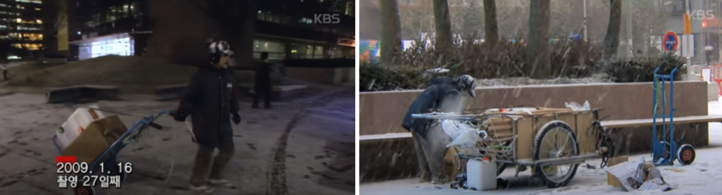 일을 해서 돈을 버는 것으로 자존심을 지켰던 영재씨는 폐지수집을 그만 두었다. 15시간 일을 하는데 15.000원 번다며