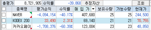 이제 관리의 영역이겠지. 항상 현금을 보유를 하고 있고 코스피 위주로 가져간다.