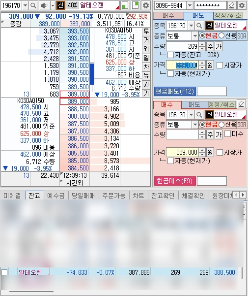 알테오젠은 아직도 많이 남아있지만 가지고 있는 것중에 수익이 났으니 리밸런싱을 위해 10주를 팔았다.