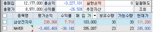 아들의 주식이다. 잡주를 정리하고 아들이 말한 삼성전자우를 30주를 샀다.